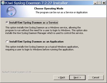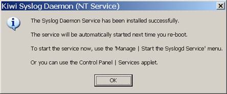 This indicates that you successfully installed the software and should be all set to start receiving messages from network devices. Please note! If you have a different service that is also running a syslog service (such as CiscoWorks) youll need to disable this, or change the port that is used.