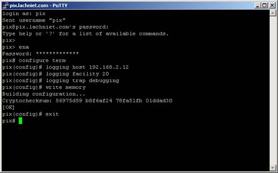I will discuss how to configure a PIX firewall to start sending logs to your newly created Syslog server. You could very well be doing this on a Cisco router the procedures are very similar.