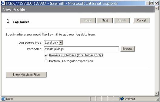 Next, type in the location of your logfiles, and click on the box to process subfolders. This will make is to that all files within the directory are processed, as you may someday want to do some organization of logfiles by date, etc.