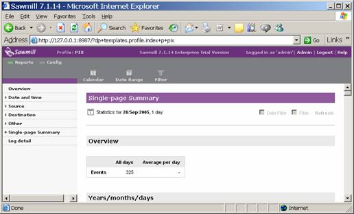 Having your log data logged to disk is great, but its not like you are going to page through 10gb of log data a day to figure out what is going on with your network. Enter Sawmill, the jack of all trades log analyzer tool. Sawmill, while not immediately intuitive to some has a wealth of features, and the ability to drill down into a zillion different log formats is very nice. Ive used it to analyze logs from proxy servers, web servers, firewalls and even goofy systems like Border Manager. Anyway, go ahead and download the latest version of Sawmill from the website at http://www.sawmill.net. Take the latest production version.